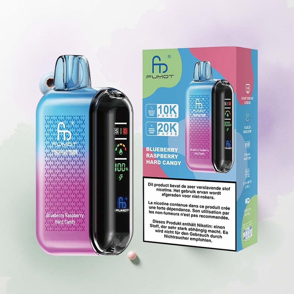 Fumot Tornado 20000 Caramelo Duro de Arándano y Frambuesa con Batería Recargable y Control de Flujo de Aire
